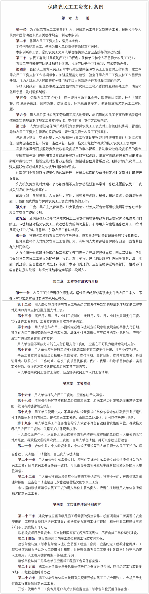 《條例》是我國迄今為止工資支付方面的最高層次立法,為保護廣大農(nóng)民工的合法權(quán)益提供了堅實的法治保障,是推進保障農(nóng)民工工資支付工作法治化、規(guī)范化的重要標(biāo)志。